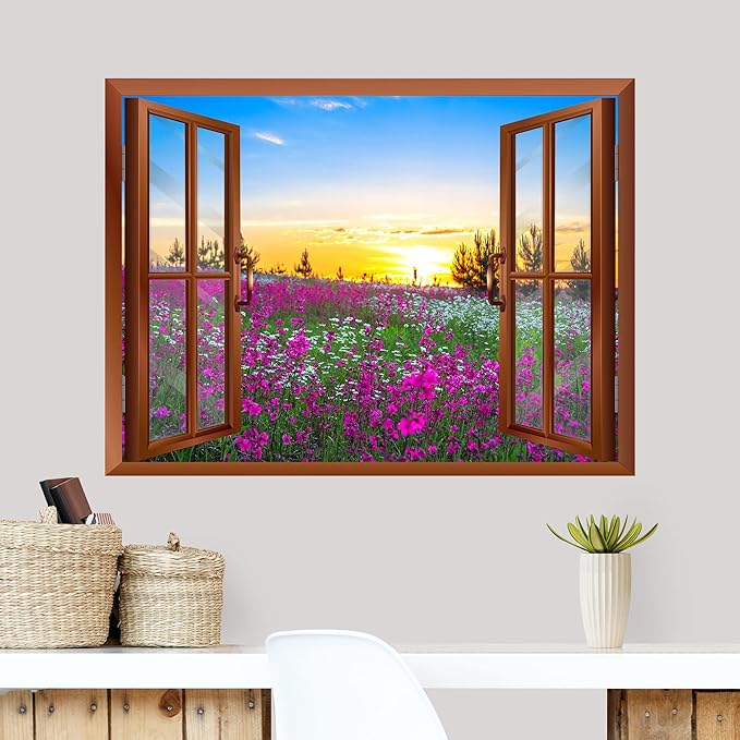 wall26 Beautiful Summer Sunrise Over a Blossoming Meadow Removable Wall Sticker/Wall Mural - 24"x32"