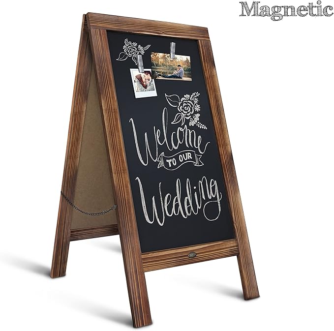 - Double-Sided Display: Maximize your message space with our double-sided chalkboard sign. Allows for versatile use in crafting your display board. Both sides are magnetic, perfect for holding business card holders or other magnetic display items.