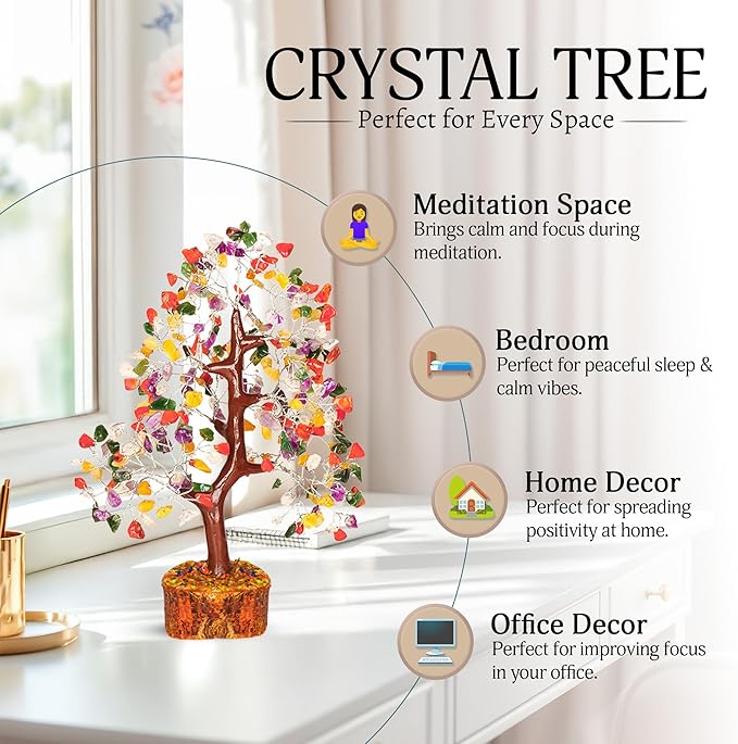 - Premium Chakra Crystal - This chakra tree heals the root chakra, solar plexus chakra, sacral chakra, heart chakra, throat chakra, third eye chakra and the crown chakra. Use this mesmerizing shining tree while doing yoga or excerises and benefit from it's chakra healing properties. In feng shui ,this tree is used to attract good luck and money, so you can also place this tree on your office desk and step up your business.