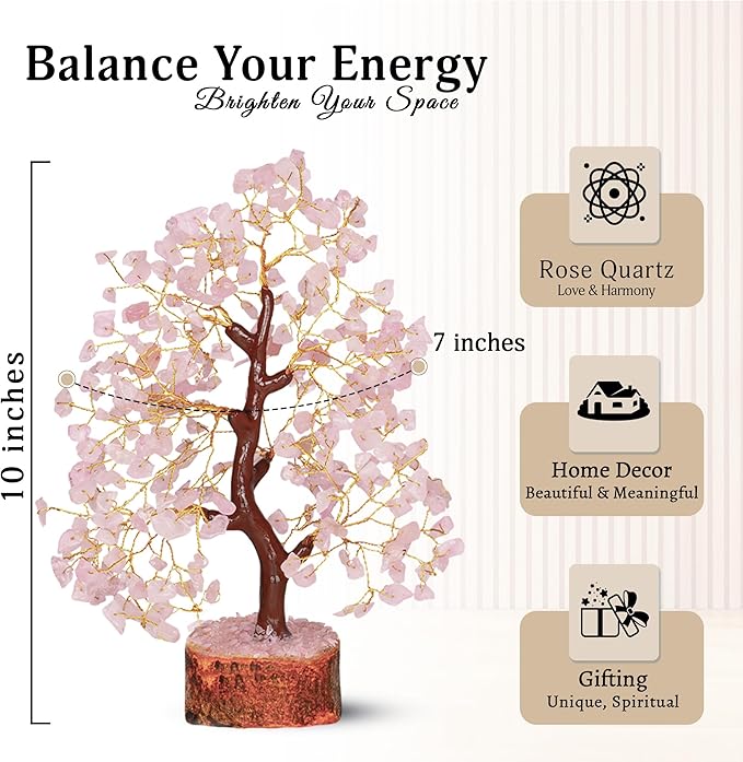 - Crystal Decor - The beautiful pink shades of the rose quartz crystal, make this feng shui buddha tree an elegant item for decorations. The crystal tree can ideally be used for home decor, kitchen decor, office decor, decor, decor, garden decor, bonsai decor, feng shui decor, crystal decor, table decor, office desk, spiritual decor, turquoise decor, table decorations for living room, tree of life wall decor, desk decorations, buddha statute, office decoration.
