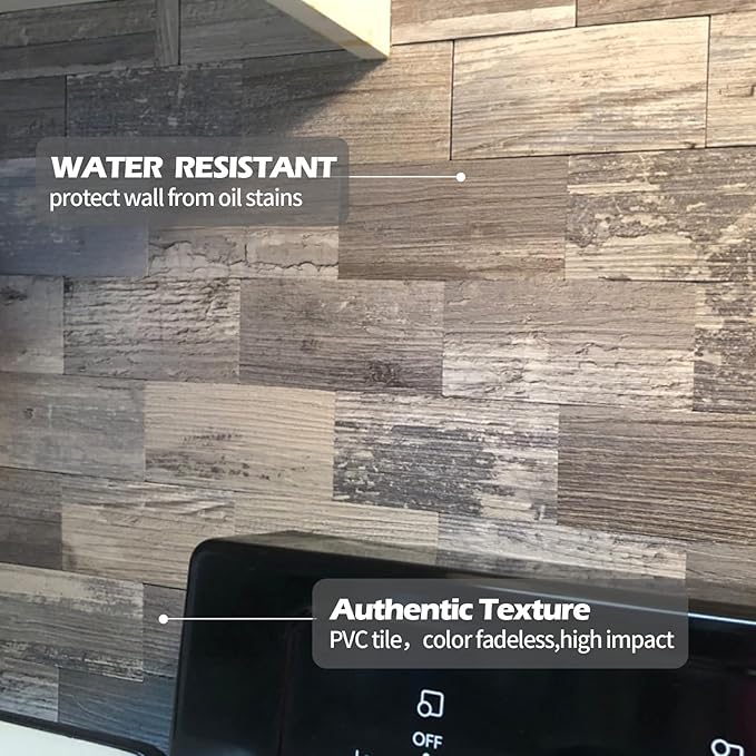 - √Real Texture - Each individual Peel and stick backsplash with various realistic distressed wood texture and color, completing a perfect project with rich texture and retro effect.