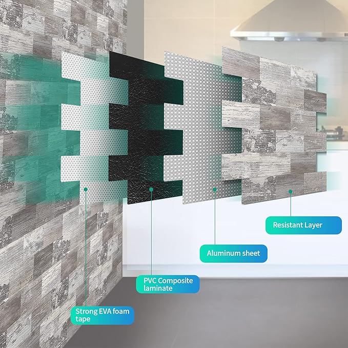 - √Strong resistant - This backsplash tile made of muti layer PVC composite laminate, thickness of 4mm, more thicker than 3D wallpaper or vinyle tile, Feature heat and humidity resistance, anti-scratch, high impact, color fadeless, designed for real-life kitchen and bathroom.