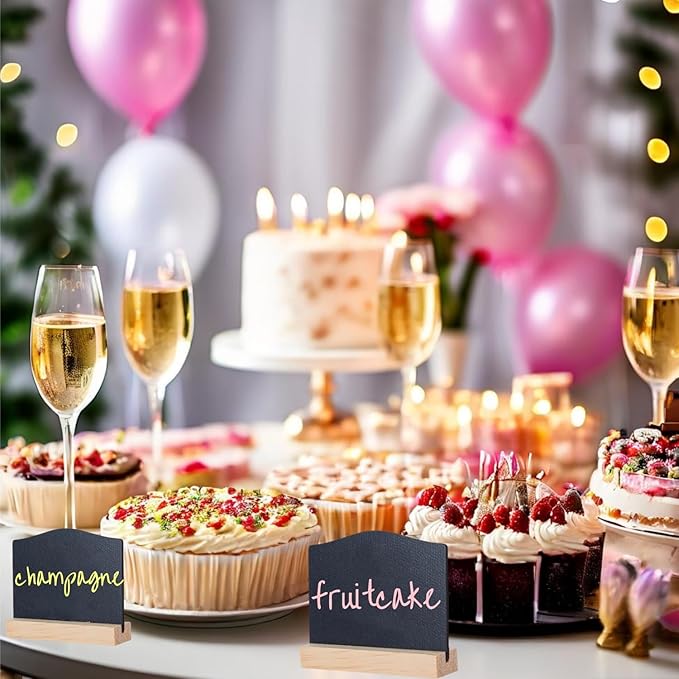 - Feature: You can place the mini chalkboard horizontally to show your message for wedding party table numbers, plant decoration sign, food labels, table markers, food signage, wine charms, tags or decorating, labeling, reminders and memos, as well as party favors