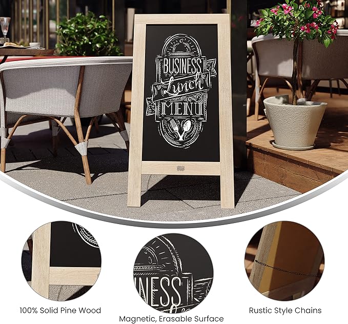 - Double-Sided Magnetic Surface: This black frame A-frame sign offers a 40" x 20" double-sided magnetic writing surface, perfect for displaying menus, specials, or announcements. Ideal for Cafésrestaurants, and weddings. Never worry about leftover chalk-marks with our no-ghost writing surface!