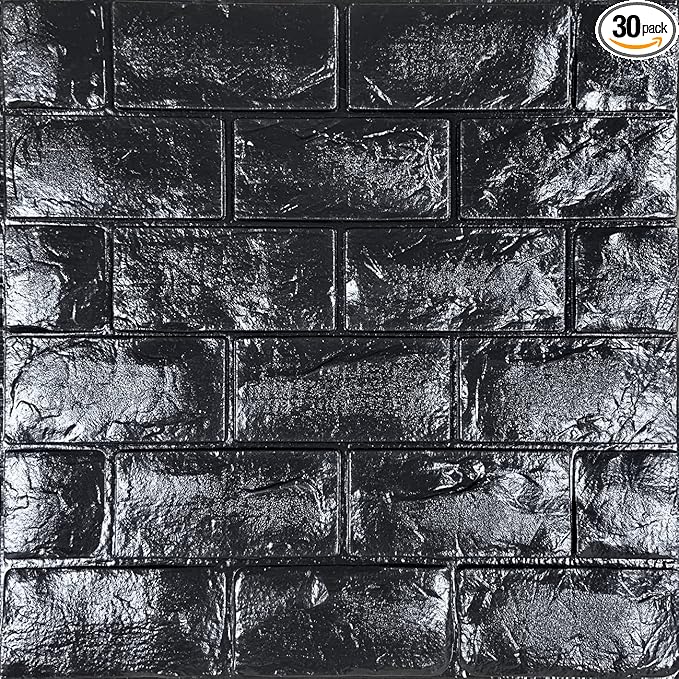 YU LI 3DH 3D Wall Panels Peel and Stick 30PCS Black Foam Brick Wallpaper for Bedroom Faux Stone Wall Panel Self-Adhesive Wallpaper (30PCS-29 Sq Ft, Black)