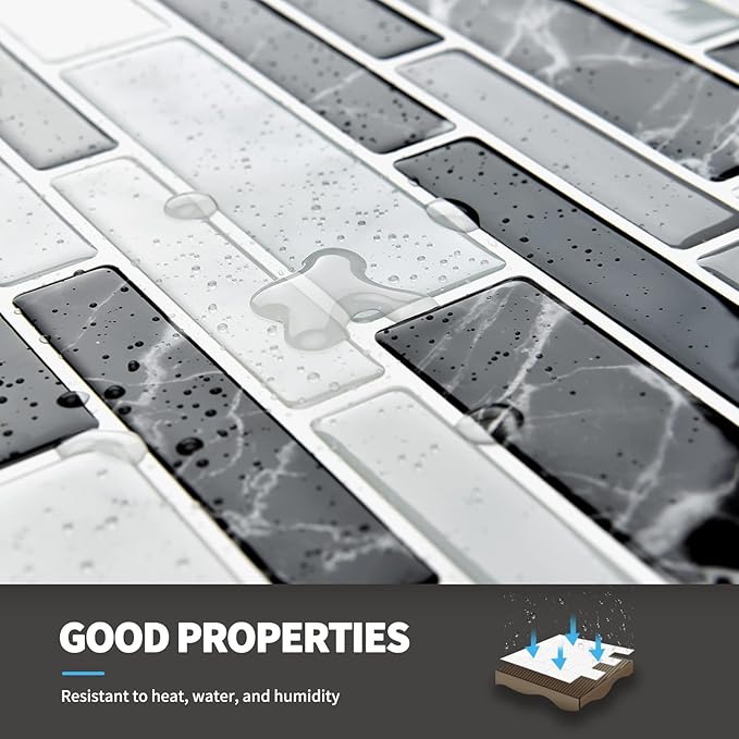 - 10 Sheets premium self-adhesive tiles, 11.8" X 11.8" each