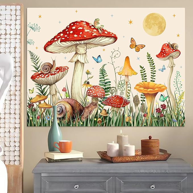 - 【Practicality】: This aesthetic mushroom tapestry can be used as backdrop decor, birthday party decor, bed cover, beach blanket, picnic blanket, table cloth, etc.