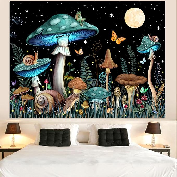 - 【Practicality】: This aesthetic mushroom tapestry can be used as backdrop decor, birthday party decor, bed cover, beach blanket, picnic blanket, table cloth, etc.