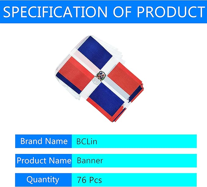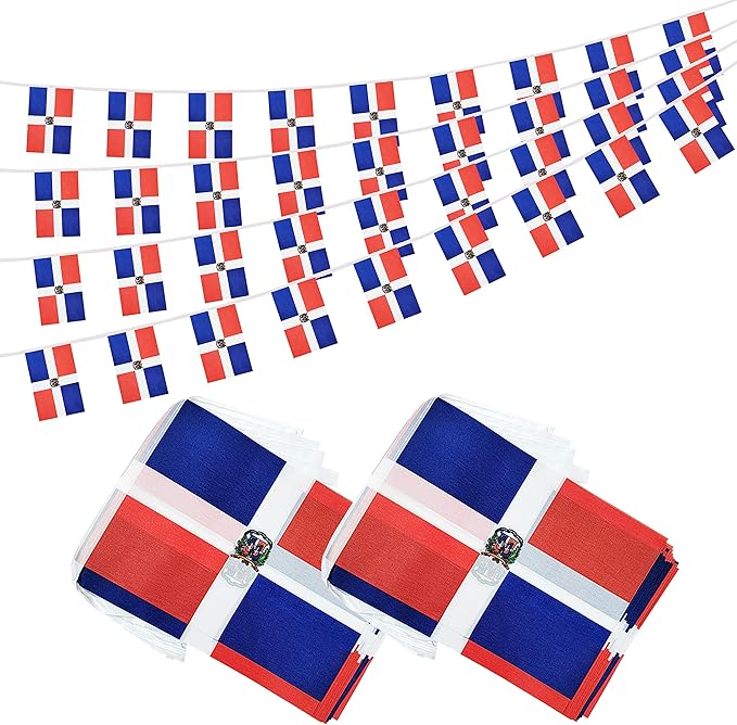 100 Feet Dominica Banner Flag String, Dominican Mini Flag Small Banner, for Party, Shops and Bars Decorations, Outdoor Decorations, 76 Flags