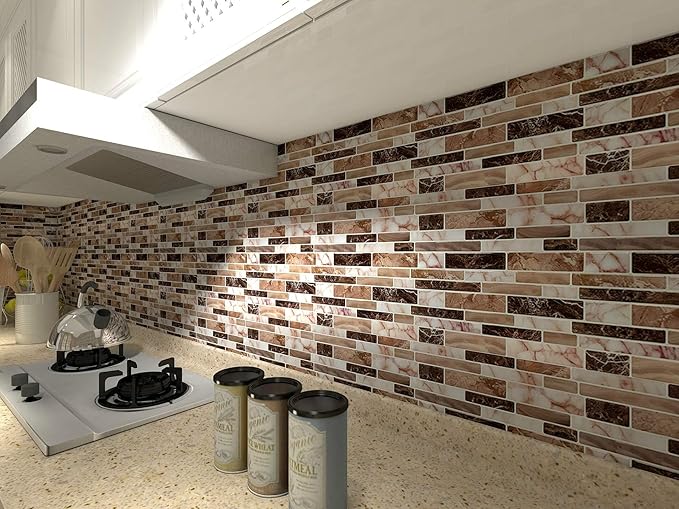 Art3d Peel and Stick Brick Kitchen Backsplash Self-Adhesive Wall Tile Stone Design, 10 Sheets (Brown)