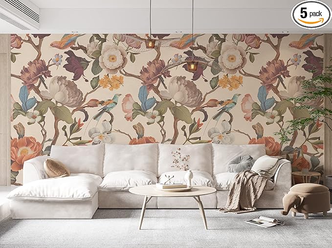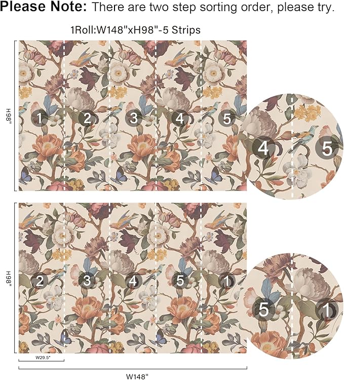 - 1 Roll Wall Mural: 98"H x 148"W (Covers 101 sq. ft. ). This floral wallpaper is cut into 5 strips for easy installation. Measure your wall and buy enough rolls. Transform any room in your home with a stunning peel and stick wall mural