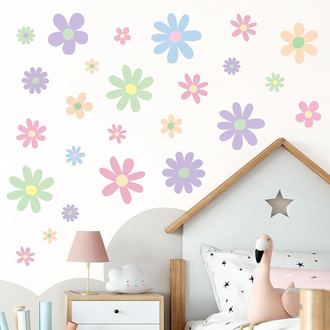 - Premium Quality Made;Strong Self-adhesive: The daisy floral wall decals are made of high-quality,tear-resistant material,naturally harmless vinyl,waterproof,sturdy and re-positionable when make mistakes,and the bright colors will never fade.These girls wall decals have powerful adhesion could cling for years but never hurt the wall surface and leave no residue behind when you want to remove them
