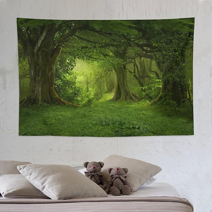 ZhiRain Landscape Forest Tapestry Wall Hanging Tropical Jungle Green Trees Foliage Woodland Nature Tapestries Home Decor for Living Room Bedroom Apartment Farmhouse Dorm 60"x90"