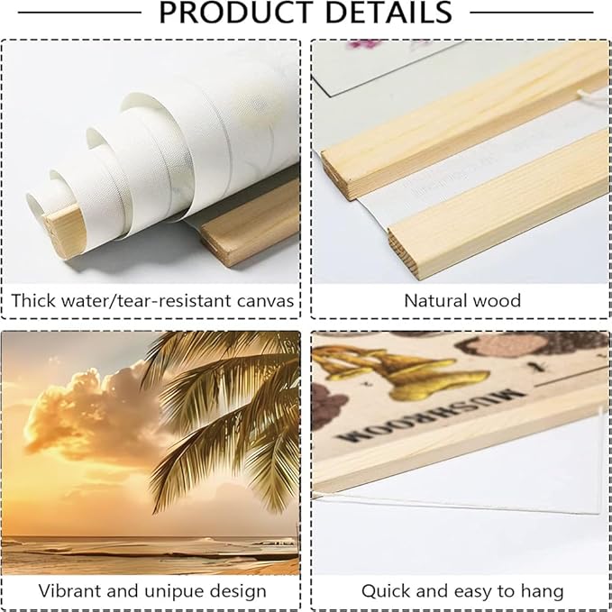3pcs Beach Canvas Wall Art, Canvas Art with Frames, For Office Home Decor Bedroom Living Room Wall Decor. (Yellow Beach 18L x 12W, Framed)