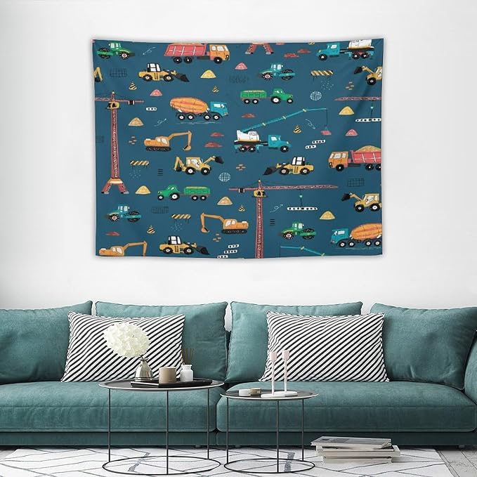 ZhiRain Cartoon Truck Print Tapestry Wall Hanging for Kids Room, Bucket Truck Tapestries Home Decor for Living Room Bedroom Apartment Farmhouse Dorm 30"x40"
