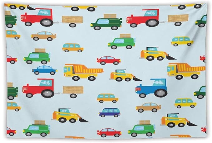ZhiRain Cartoon Cars Print Tapestry Wall Hanging for Kids Room Cartoon Shovel And Trucks Blue Tapestries Home Decor for Living Room Bedroom Apartment Farmhouse Dorm 40"x60"