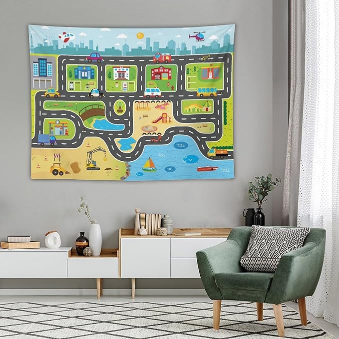 ZhiRain Kid Truck Tapestry Wall Hanging for Boys Construction Car Tractor Cartoon Cute City Street Map Traffic Tapestries Home Decor for Living Room Bedroom Apartment Farmhouse Dorm 60"x80"