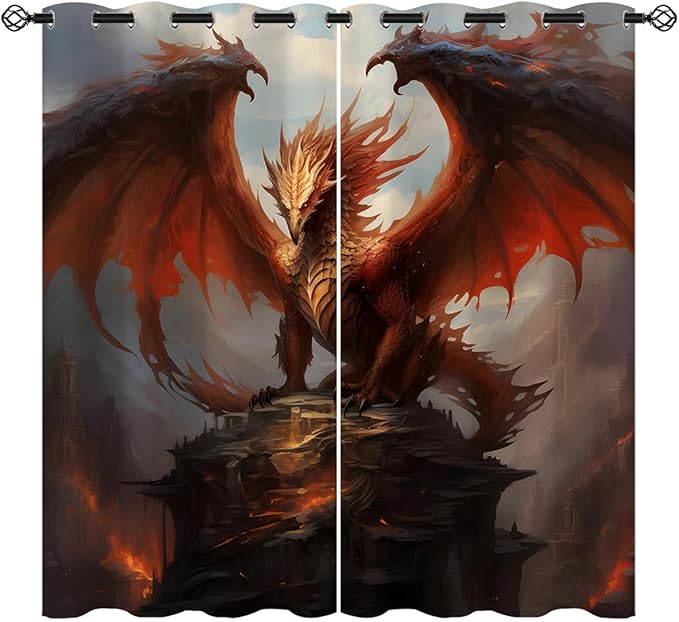 18TH CROZY Dragon Blackout Curtains for Girls Boy Home Decor, Medieval Fantasy Magical Red Animal Grommet Thermal Insulated Drapes Darkening Window Curtain for Bedroom Living Room, 42 x 63 Inch