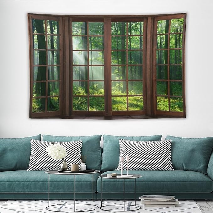ZhiRain Forest Tapestry Wall Hanging Green Tree Full Scenery Window Jungle Wild Nature Landscape Print Tapestries Home Decor for Living Room Bedroom Apartment Farmhouse Dorm 40"x60"