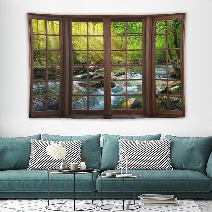 ZhiRain Spring Forest Nature Landscape Tapestry Wall Hanging Beautiful Stream River Rocks Mountain Forest Tapestries Home Decor for Living Room Bedroom Apartment Farmhouse Dorm 60"x90"