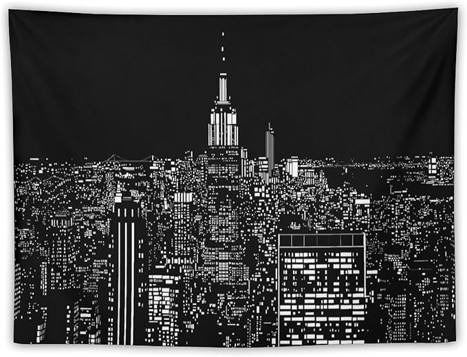 ZhiRain New York Tapestry Wall Hanging Black White Modern Night City Light Tapestries Home Decor for Living Room Bedroom Apartment Farmhouse Dorm 30"x40"