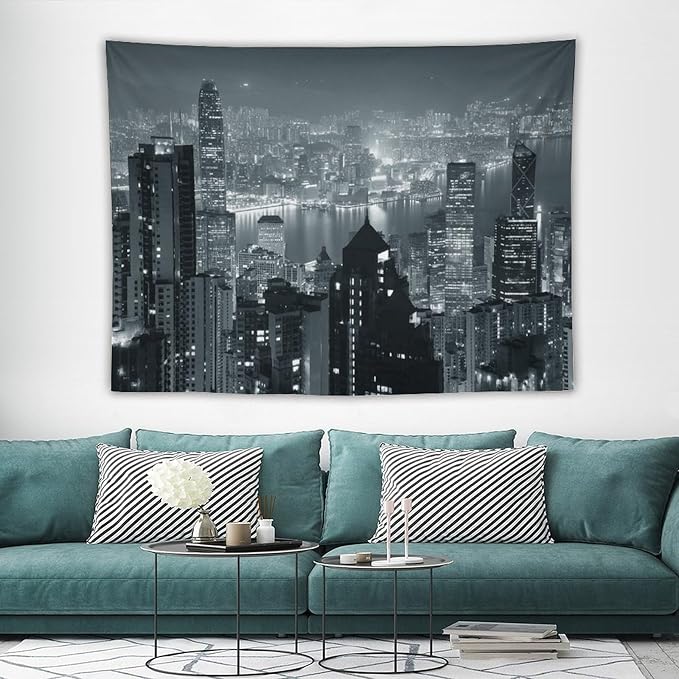 ZhiRain City Tapestry Wall Hanging Aerial Night View Hong Kong Skyline Modern Famous Urban Town Tapestries Home Decor for Living Room Bedroom Apartment Farmhouse Dorm 60"x80"