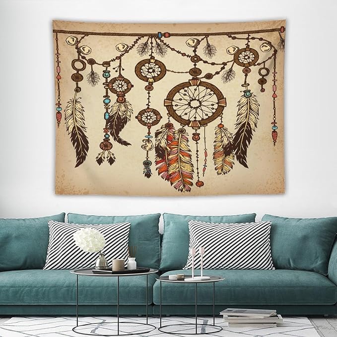 ZhiRain Retro Rustic Dream Catcher Tapestry Wall Hanging Boho Native Dreamcatcher Hippie Feather Tapestries Home Decor for Living Room Bedroom Apartment Farmhouse Dorm 60"x80"