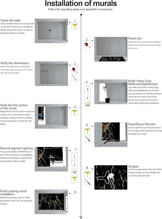 - Construction Installation: Each part of the mural is marked with a serial number underneath, no overlap, direct docking, in order. (Please refer to installation instructions)
