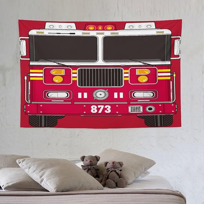ZhiRain Cartoon Fire Truck Tapestry Wall Hanging Fire Engine Firemen Car Firefighter Truck Fire Fighting Tapestries Home Decor for Living Room Bedroom Apartment Farmhouse Dorm 40"x60"