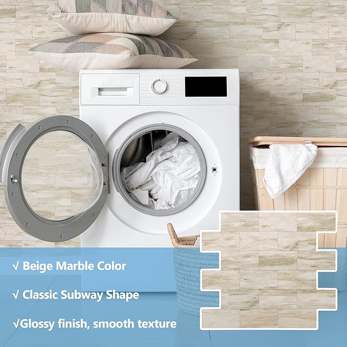 - √Strong resistant - This backsplash tile made of muti layer PVC composite laminate, more thicker than 3D wallpaper or vinyle tile on market, water proof, heat-resistant, anti-scratch, high impact, color fadeless, and easy to clean, suitable for the majority of interior application including real-life kitchen and bathroom.