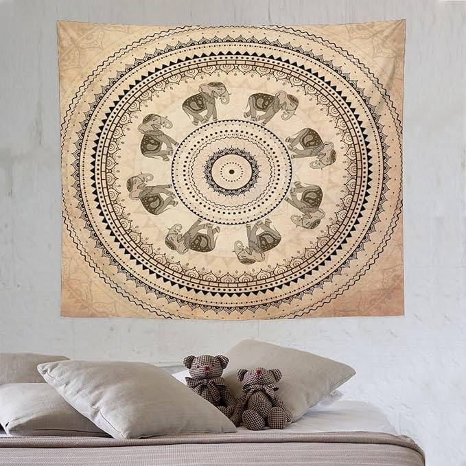 AAVEUP Indian Hippie Bohemian Psychedelic Tapestry Bohemian Brown Abstract Geometric Mandala Flower Vintage Elephant Texture Tapestries for Bedroom Dorm Living Room Decor 50x60in