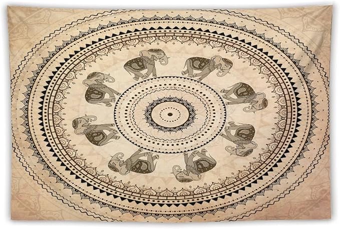 AAVEUP Indian Hippie Bohemian Psychedelic Tapestry Bohemian Brown Abstract Geometric Mandala Flower Vintage Elephant Texture Tapestries for Bedroom Dorm Living Room Decor 40x60in