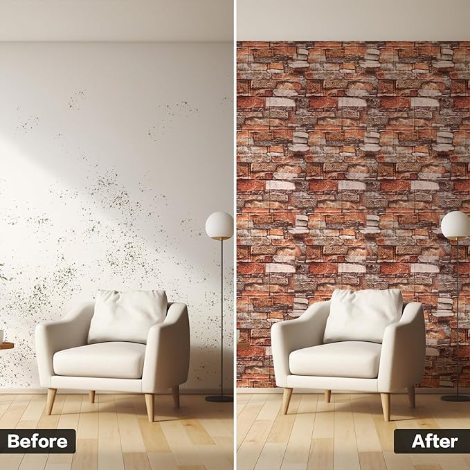- PERFECT DIY: The peel and stick surface of the brick wallpaper is in 3D effect, which makes the wall more textured and looks like real bricks, and you can also enjoy the joy of DIY to create your own unique style of the room