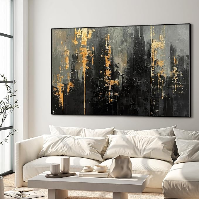 46"x72" XL Framed Wall Art - Modern Black and Gold Urban Wall Art (Frame Assembly Required)
