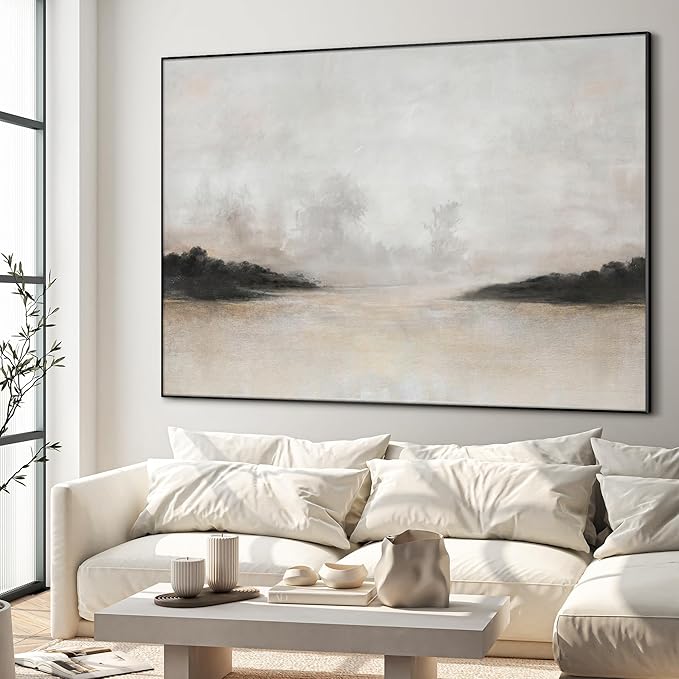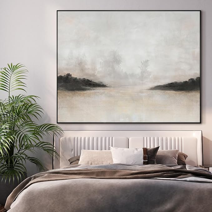 46"x60" XL Framed Wall Art - Misty Minimalist Nature Landscape (Frame Assembly Required)