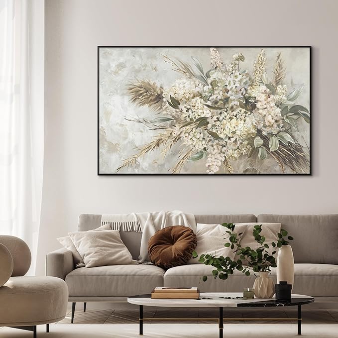 36"x60" XL Framed Wall Art - Elegant Whimsical White Flower Bouquet (Frame Assembly Required)