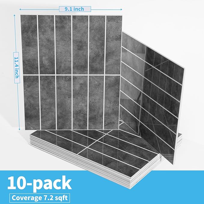 - Size & Package – Each pack includes 10 sheets of 11.4"x9.1" faux stone tiles, providing 7.2 square feet coverage for your renovation projects. Ideal for accent walls, kitchen upgrades, or bathroom transformations.