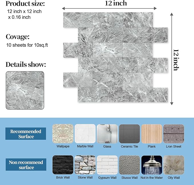- √Strong resistant - This backsplash tile made of muti layer PVC composite laminate, more thicker than 3D wallpaper or vinyle tile on market, water proof, heat-resistant, anti-scratch, high impact, color fadeless, and easy to clean, suitable for the majority of interior application including real-life kitchen and bathroom.