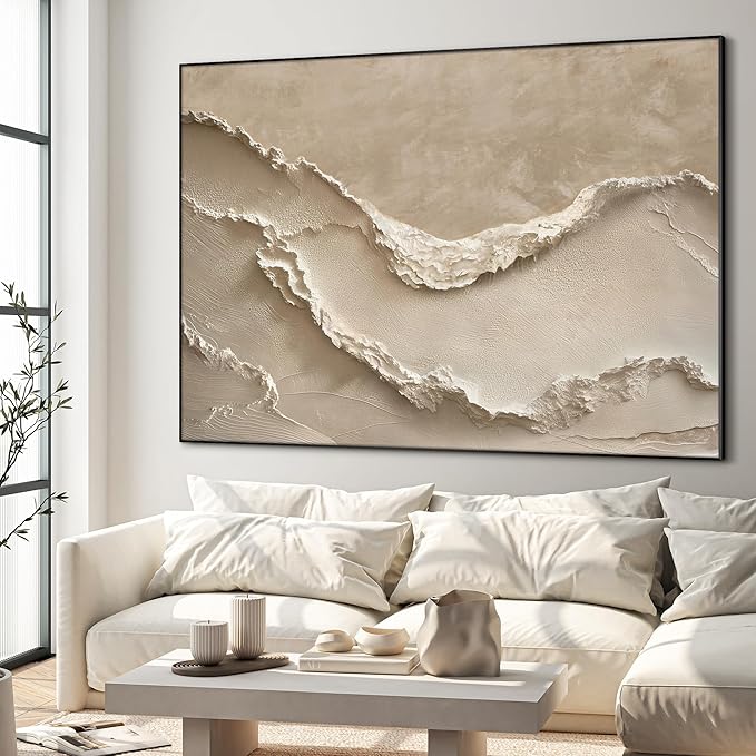 46"x60" XL Framed Wall Art - Decor Neutral Beige Layered Landscape (Frame Assembly Required)