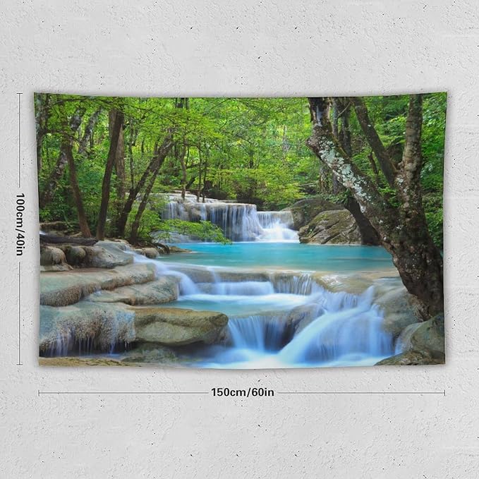 ZhiRain Waterfall Tree Tapestry Wall Hanging Natural Scenery Forest Garden Spring Stone River Tapestries Home Decor for Living Room Bedroom Apartment Farmhouse Dorm 40"x60"