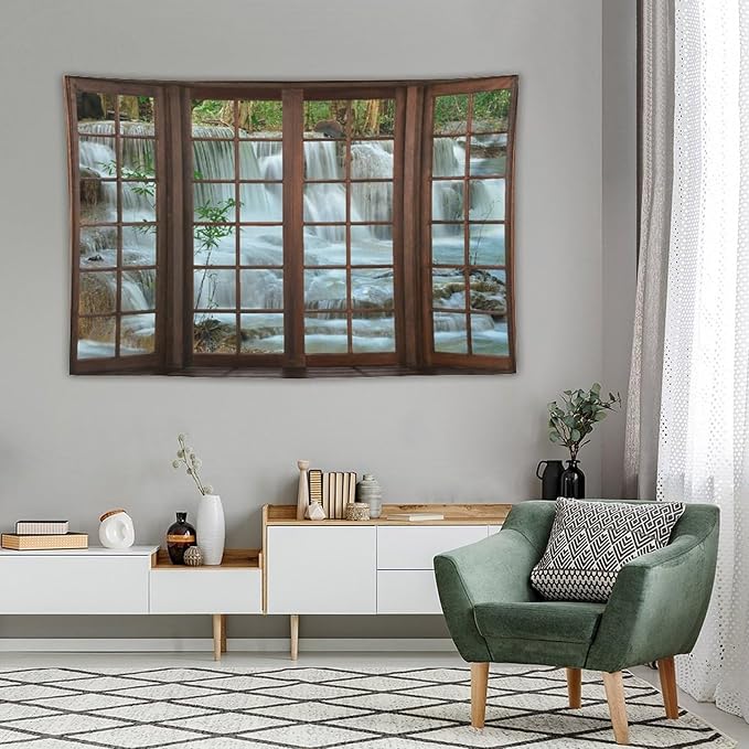 ZhiRain Nature Waterfall Landscape Tapestry Wall Hanging Forest Bamboo Garden Jungle Stream Scenery Tapestries Home Decor for Living Room Bedroom Apartment Farmhouse Dorm 40"x60"