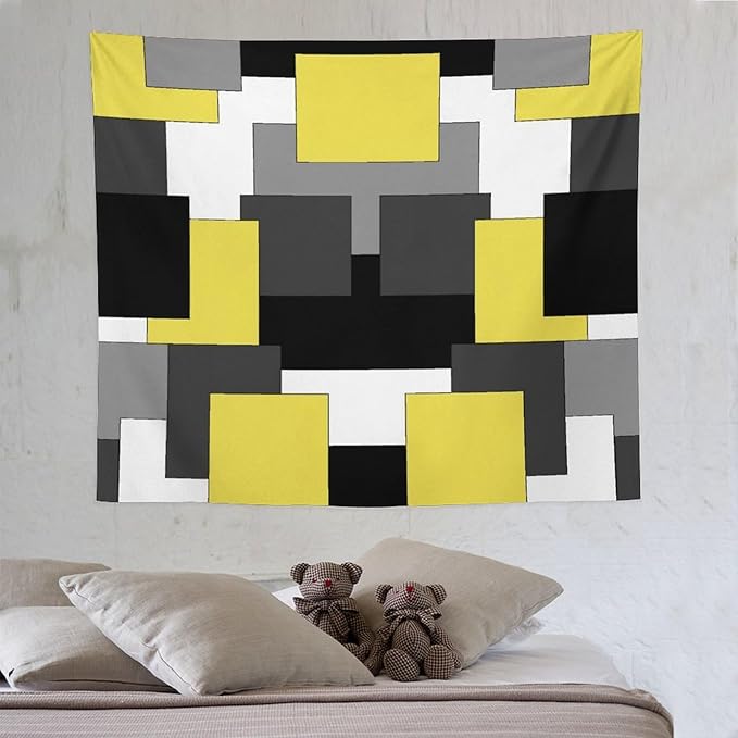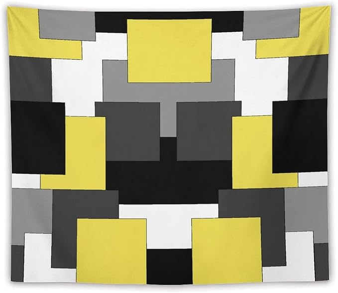 ZhiRain Yellow And Black Tapestry Wall Hanging Gray White Geometric Silver Dark Abstract Square Art Tapestries Home Decor for Living Room Bedroom Apartment Farmhouse Dorm 50"x60"