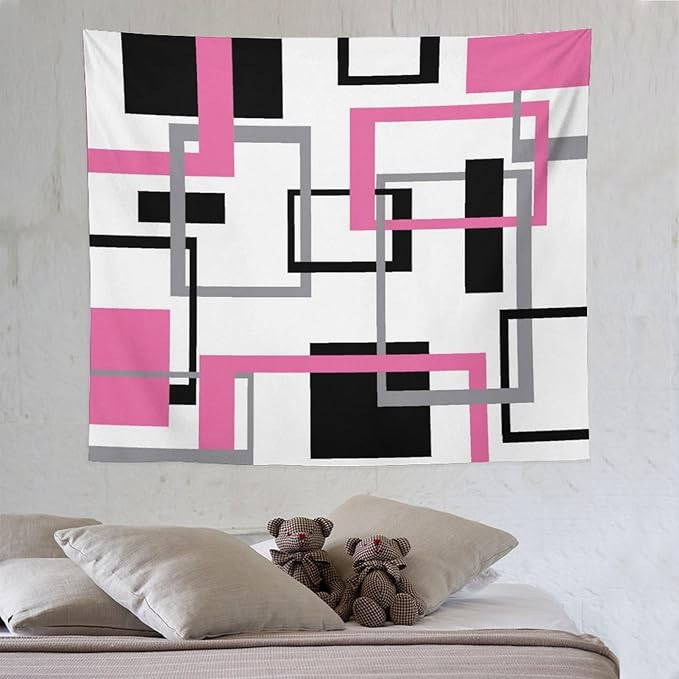 ZhiRain Pink Tapestry Wall Hanging Modern Geometric Abstract Pink Grey White Background Mid Century Square Tapestries Home Decor for Living Room Bedroom Apartment Farmhouse Dorm 50"x60"