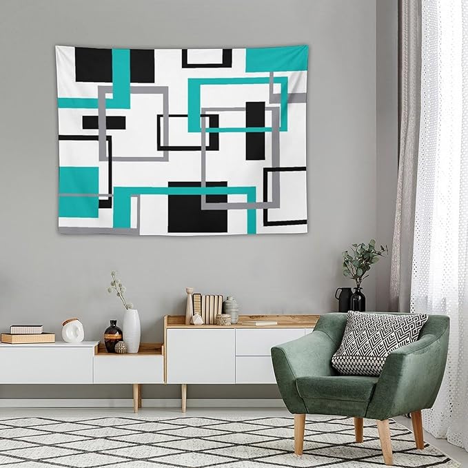 ZhiRain Teal Tapestry Wall Hanging Mid Century Modern Turquoise Abstract Aqua Black Grey Geometric White Backdrop Tapestries Home Decor for Living Room Bedroom Apartment Farmhouse 30"x40"