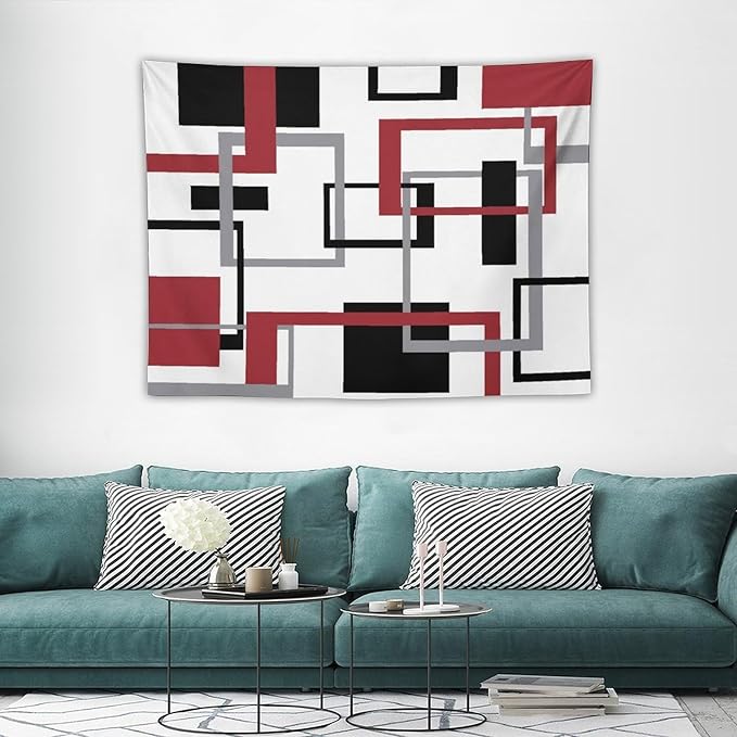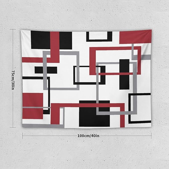 ZhiRain Red Tapestry Wall Hanging Mid Century Modern Geometric Abstract Red Black Grey Square White Backdrop Tapestries Home Decor for Living Room Bedroom Apartment Farmhouse Dorm 30"x40"