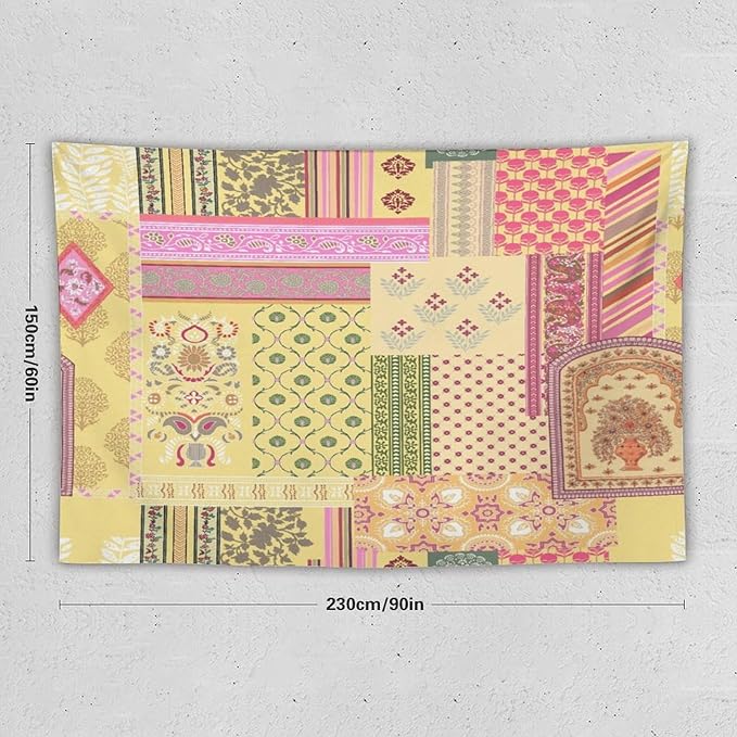 ZhiRain Patchwork Bohemian Tapestry Wall Hanging Colorful Boho Flower Floral Botanical Vintage Retro Indian Tapestries Home Decor for Living Room Bedroom Apartment Farmhouse Dorm 60"x90"