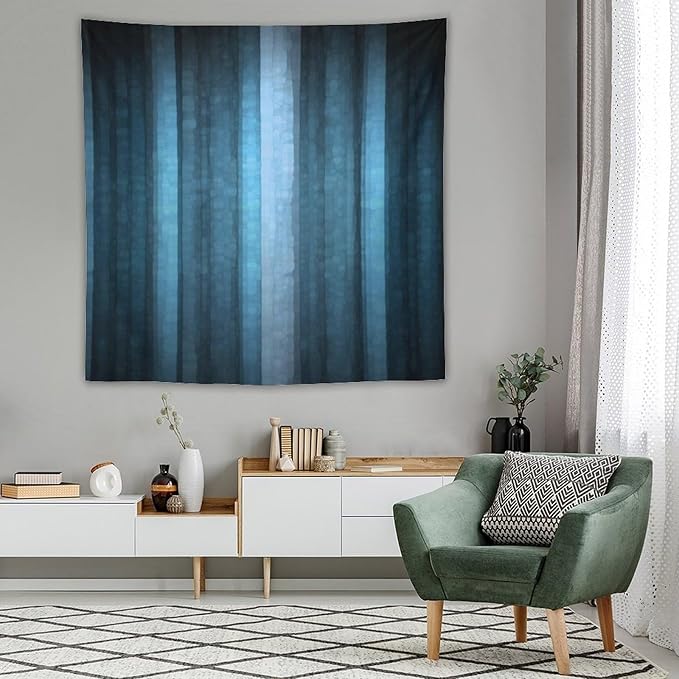 ZhiRain Blue Striped Tapestry Wall Hanging Modern Elegant Neon Blue Abstract Mosaic Glass Texture Dark Stripe Art Tapestries Home Decor for Living Room Bedroom Apartment Farmhouse 60"x60"