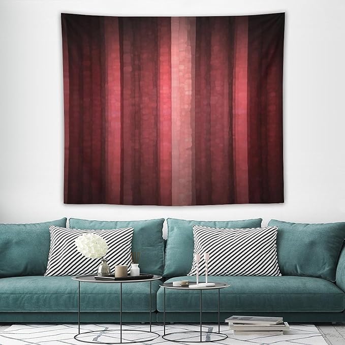 ZhiRain Red Striped Tapestry Wall Hanging Burgundy Marron Modern Vintage Abstract Mosaic Glass Texture And Dark Stripe Tapestries Home Decor for Living Room Bedroom Apartment Farmhouse 50"x60"