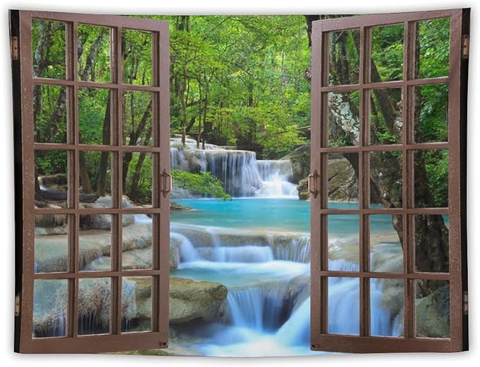 ZhiRain Waterfall Tree Landscape Tapestry Wall Hanging Natural Scenery Forest Garden Spring Stone River Tapestries Home Decor for Living Room Bedroom Apartment Farmhouse Dorm 30"x40"