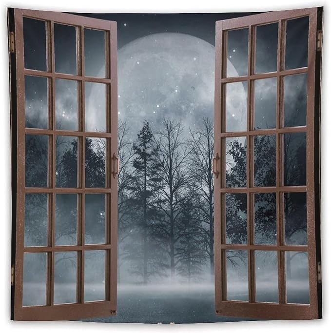 ZhiRain Misty Landscape Tapestry Wall Hanging Dark Black Nature Moon Gothic Tree Scenery Foggy Woodland Tapestries Home Decor for Living Room Bedroom Apartment Farmhouse Dorm 60"x60"